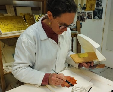 Je cherche, par mon travail, à (re)mettre en valeur à la fois le geste d'un métier ancestral qui n'a pas changé et les ornements composant notre patrimoine artistique, architectural ou pictural.