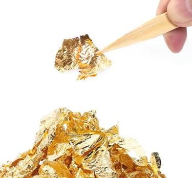La feuille d'or que j'utilise sert à sublimer des motifs humbles et simples.